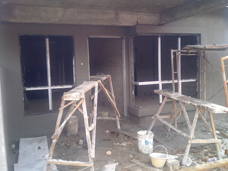 Beginilah rupa bentuk rumah jiran kami yang telah siap proses memplaster dinding dan tiang rumah ini. Ramai pekerja begitu tekun bekerja membuat plaster dinding dan tiang walaupun pada hujung minggu.